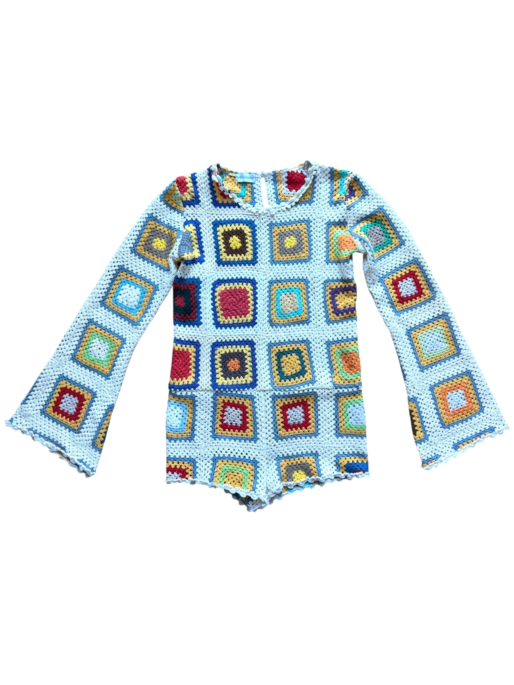 A celebration of craftsmanship and individuality, the Crochet Granny Square Mini Playsuit is meticulously handmade in Puglia, Italy, using carefully sourced vintage crochet fabrics. Each piece is a one-of-a-kind creation, echoing the timeless artistry of Italian handwork and the spirit of sustainable luxury.